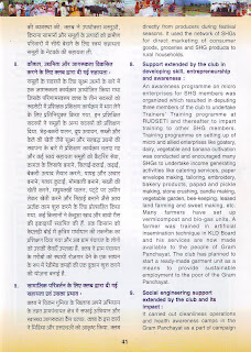One of the major impacts of the SHG movement in our country is the fact that the poor are able to come out of the clutches of the usurious moneylenders who are known to charge exhorbitant rates of interest. However, there were a few members within the SHGs promoted by the Club who still continued to be indebted to the private moneylenders which in local parlance is called as “Blade”. The group corpus was too meagre to provide individual credit to members to repay huge debts taken by them for purposes like marriage, hospitalisation etc. The quantum of credit assistance available from the bank to the SHGs was not adequate as well since it was linked to their savings. Besides, there were many families who were not covered by the SHG movement who were sailing in the same boat. This revelation came to light in the brain storming sessions organised as a part of the training programmes arranged for the Leaders of the SHGs promoted by the Club by the present DDM of NABARD. The discussions culminated in the DDM suggesting to the SHG leaders to take the lead in helping their helpless brothers and sisters from the clutches of moneylenders as a priority item.